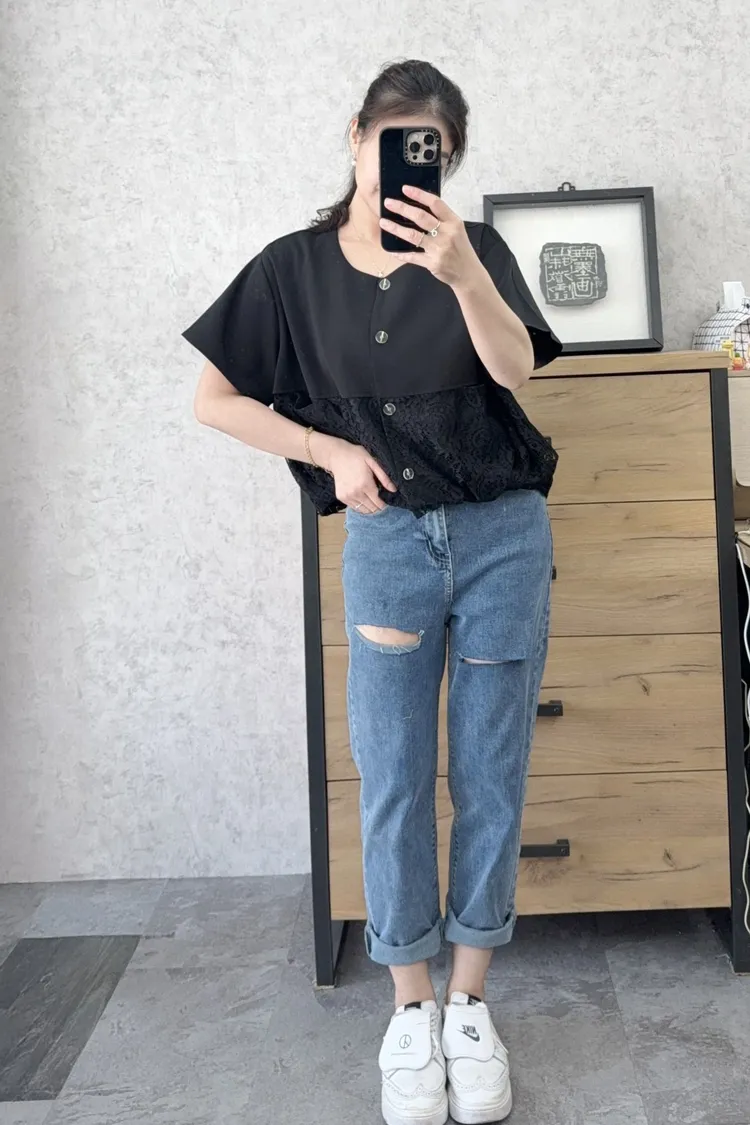寬鬆短版剪裁,搭配高腰褲/裙比例都好看