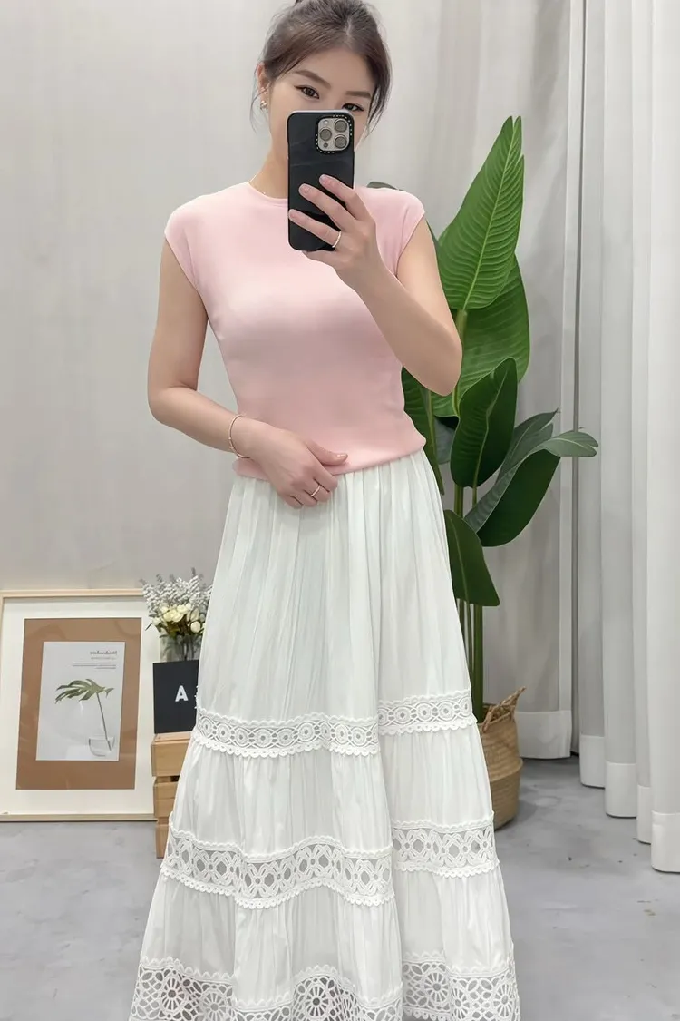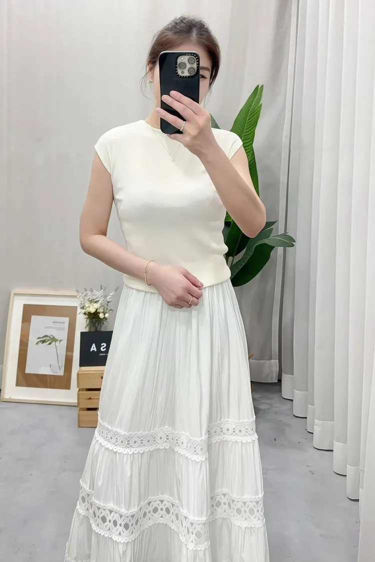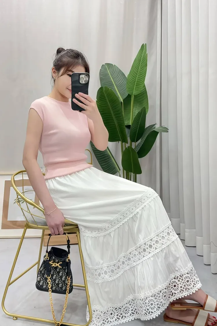 浪漫緹花裙 | 繁複細膩的鏤空花型層次,優雅且具藝術感 | 柔軟飄逸布料,具良好垂墜感,展現溫柔氣質 | 精緻工藝製作,展現高級的透視感與立體層次 | 適合晚宴、婚禮賓客、約會、攝影寫真或任何需要自帶氣場的時刻。