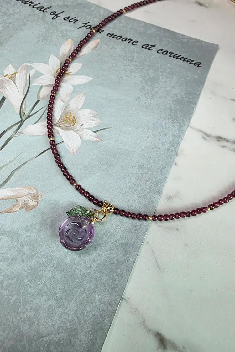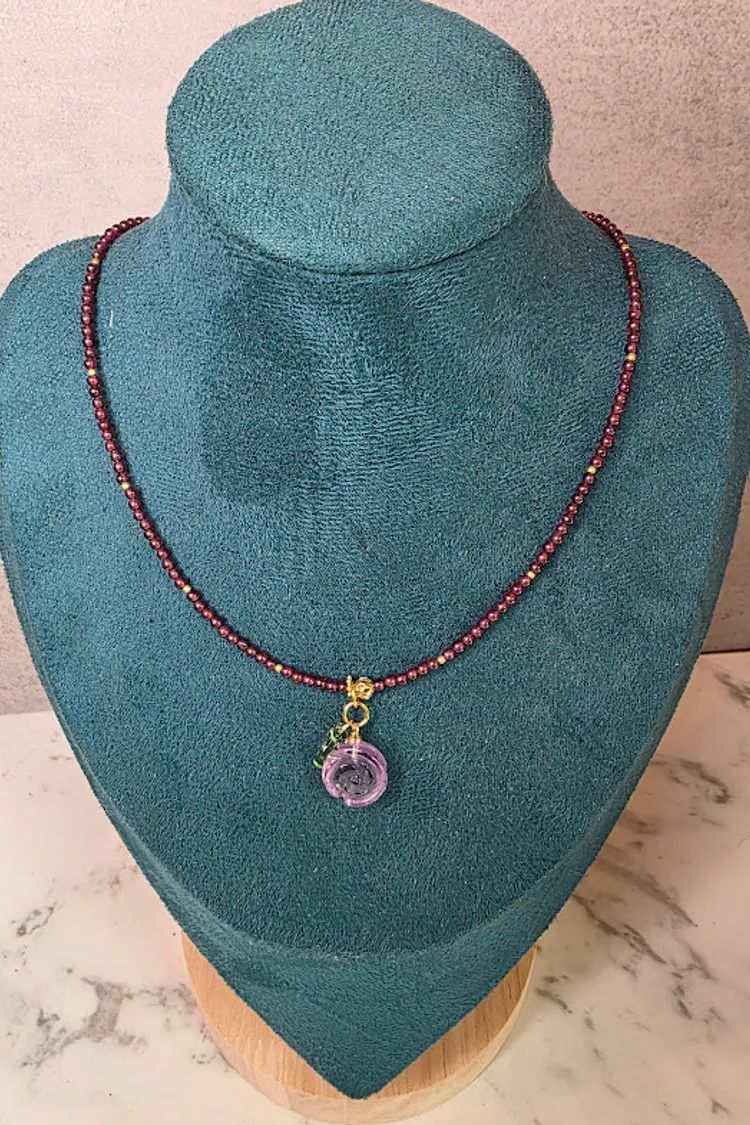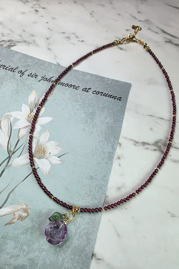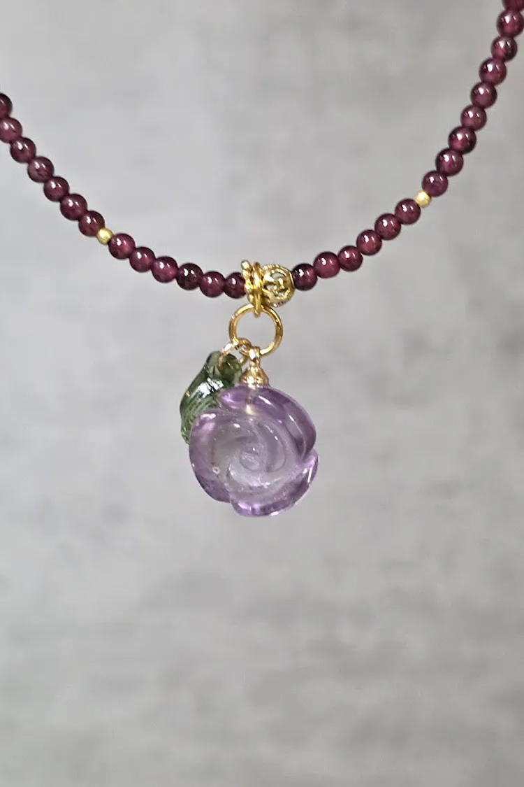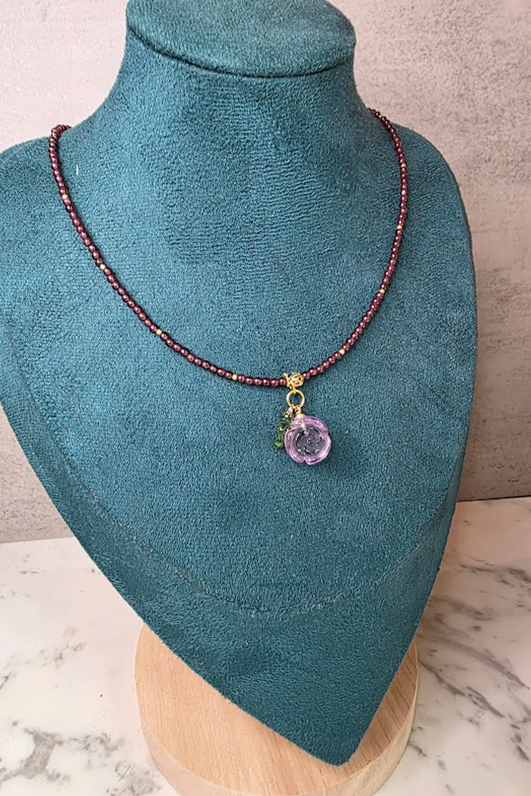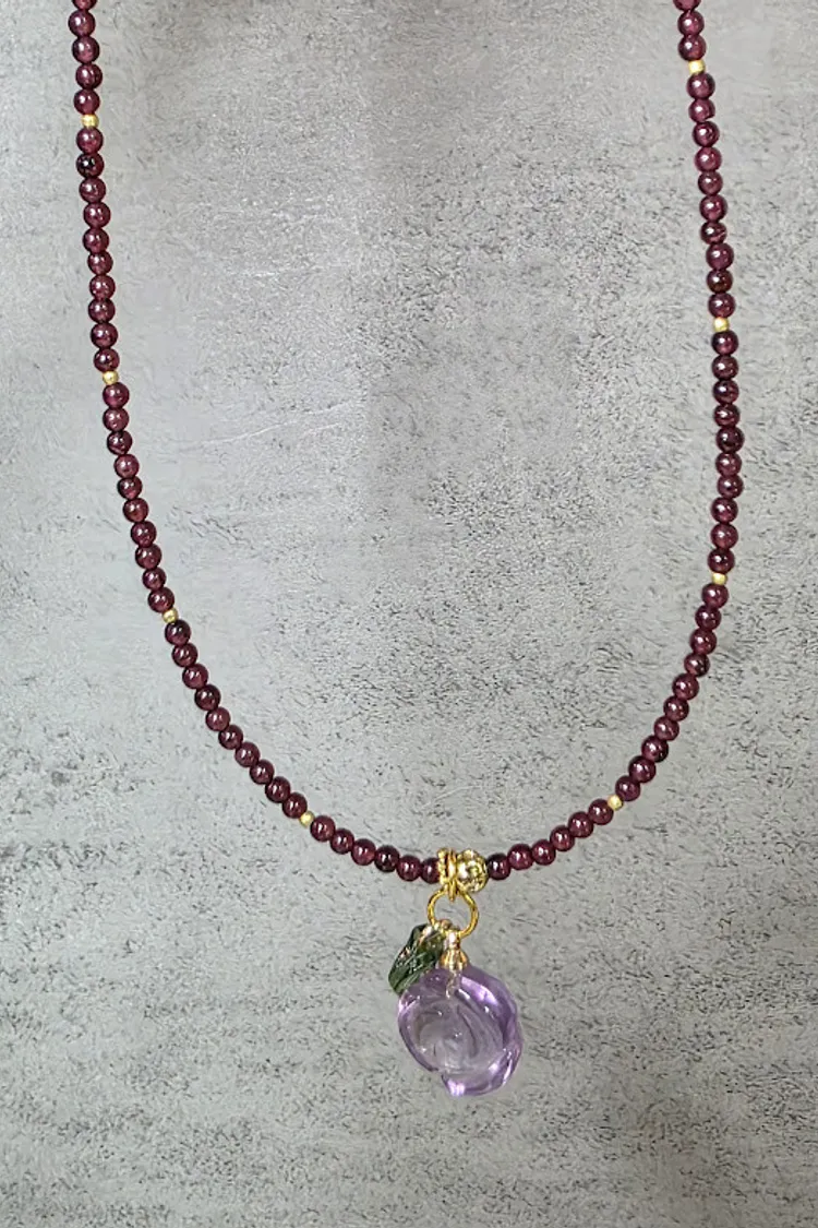 天然石榴石/紫水晶墜子水晶項鍊